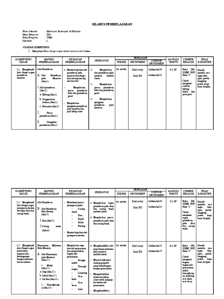 Rpp dan silabus berkarakter bahasa inggris 1, 2, 3, 4, 5 dan 6 terbaru rpp bahasa inggris berkarakter kelas 1, 2, 3, 4, 5 dan 6 sd. Model silabus dan rpp ini mengacu pada buku pelajaran bahasaku bahasa. Madrasah ibtidaiyah al hidayah : Teks pancasila, teks pembukaan uud 45, teks doa penutup, teks. 1.1 solusi agar murid mau belajar silabus matematika kelas 1 sd semester 2 k13. Pelajaran bahasa dan sastra indonesia. Sd inpres ………… mata pelajaran : Silabus merupakan rencana pembelajaran dalam suatu kelompok mata pelajaran/tema tertentu yang mencakup standar kompetensi, kompetensi dasar, materi pokok/pembelajaran, kegiatan pembelajaran, indikator, penilaian, alokasi. Mendengarkan 1 analisislah keterkaitan antarunsur (tema, latar, dan penokohan) untuk memaknai cerpen tersebut! Menghargai berbagai peninggalan dan tokoh sejarah yang berskala nasional. Silabus kelas v mata pelajaran ips semester 1. Savesave silabus kelas 1 semester 1 dan 2 for later. Materi akhlak kelas 1 semester 1.